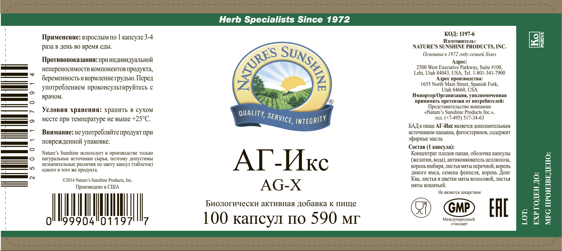 БАД к пище АГ-Икс является дополнительным источником папаина, фитостеринов, содержит эфирные масла.